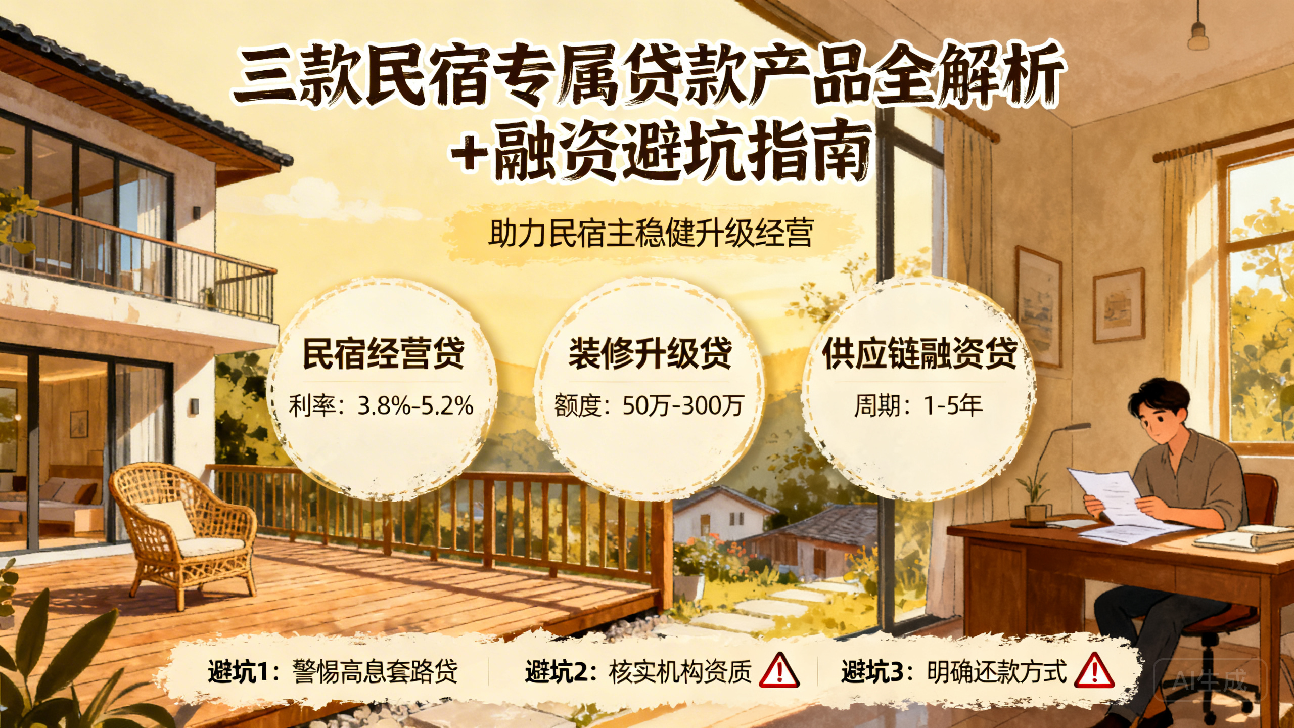 经过协会与各大银行的深度对接,我们为大家梳理了目前市面上最成熟、最适合民宿主的三类金融产品。